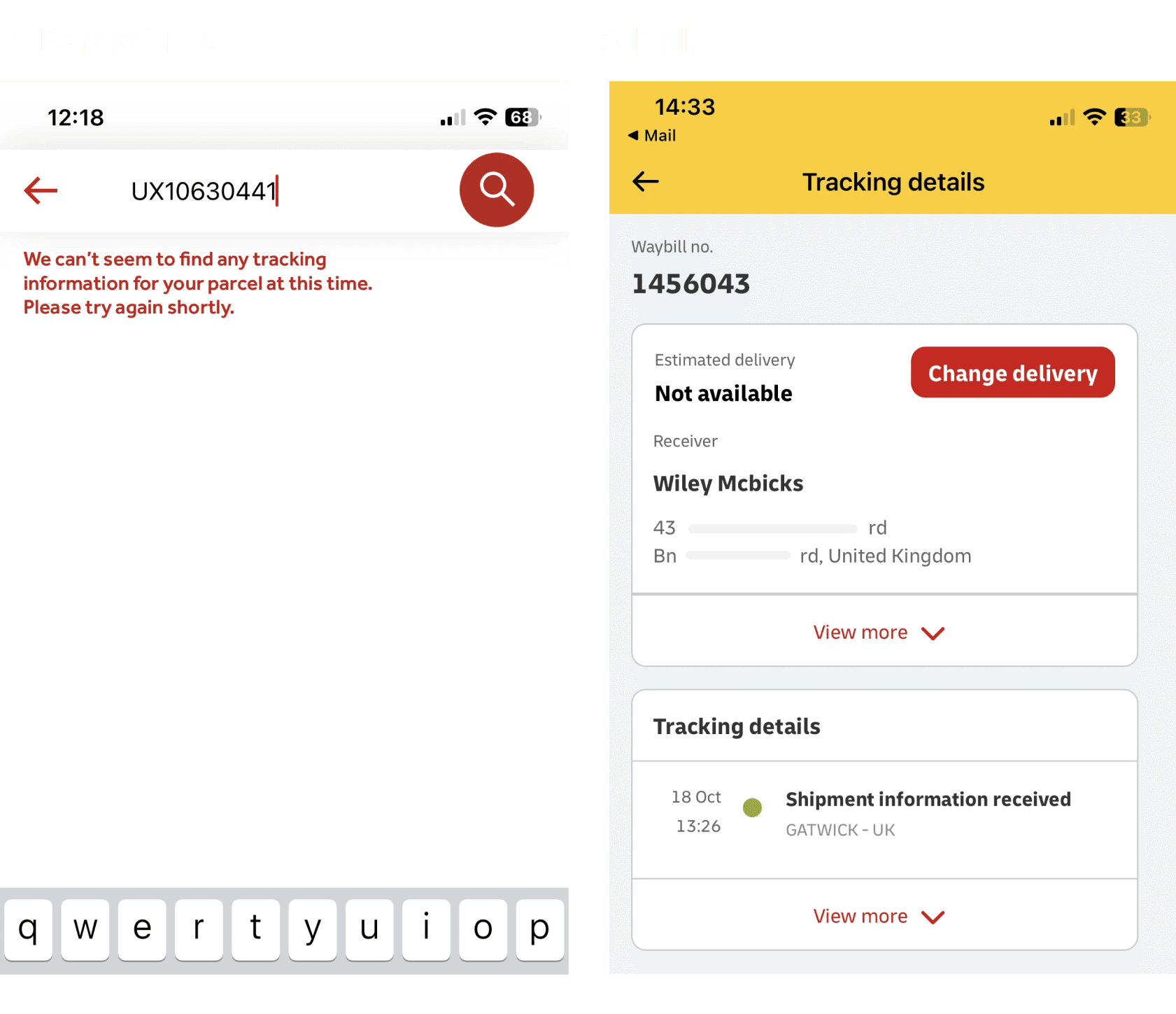 This is why it's damaging when the tracking number you've just been given errors, or shows confusing statuses.