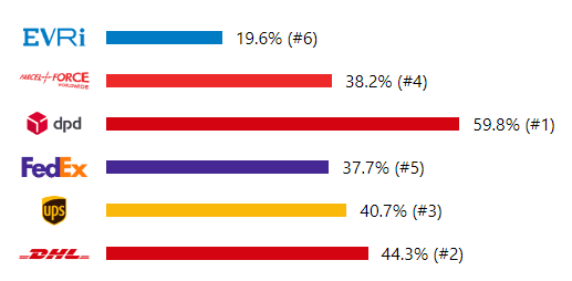 At first I assumed that they were just worse at delivering parcels, but the most reliable data I could find suggests that DPD (the best rated by customers) actually has a similar number of failed deliveries as Evri (the worst rated). ⁴