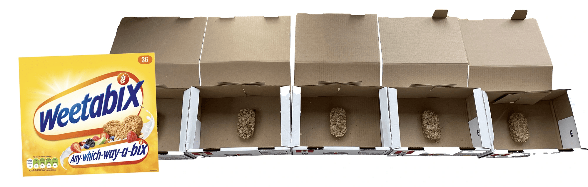 At this point they would have been confronted with a very strange sight. In each box, was a single Weetabix.
