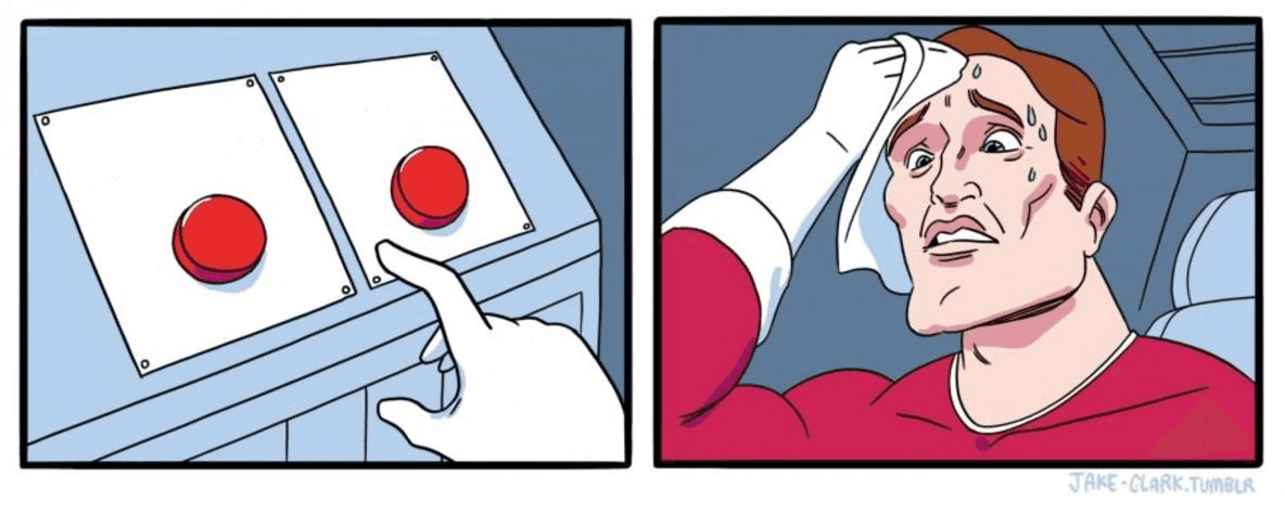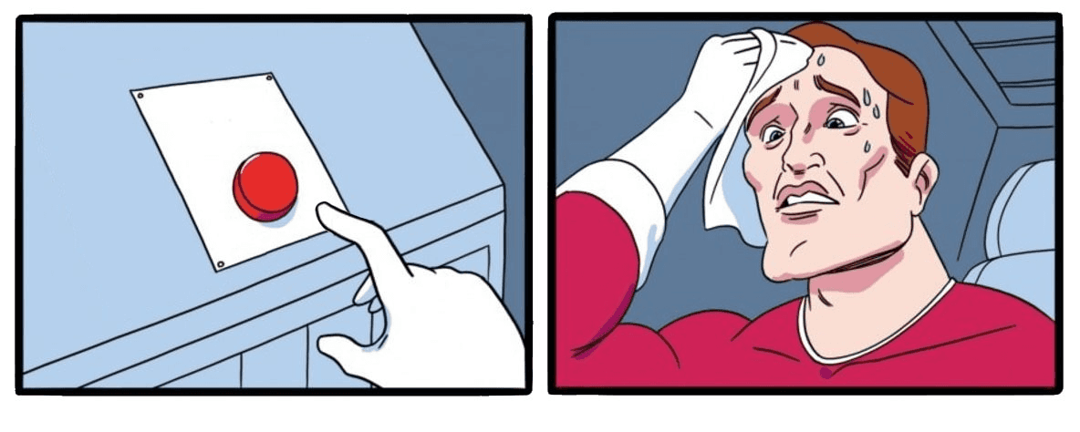 In front of you are two unlabelled buttons, and you're asked to make your decision.