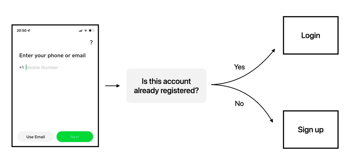 In other words, there's only one button, but two possible outcomes: creating a new account, or logging into an existing one.