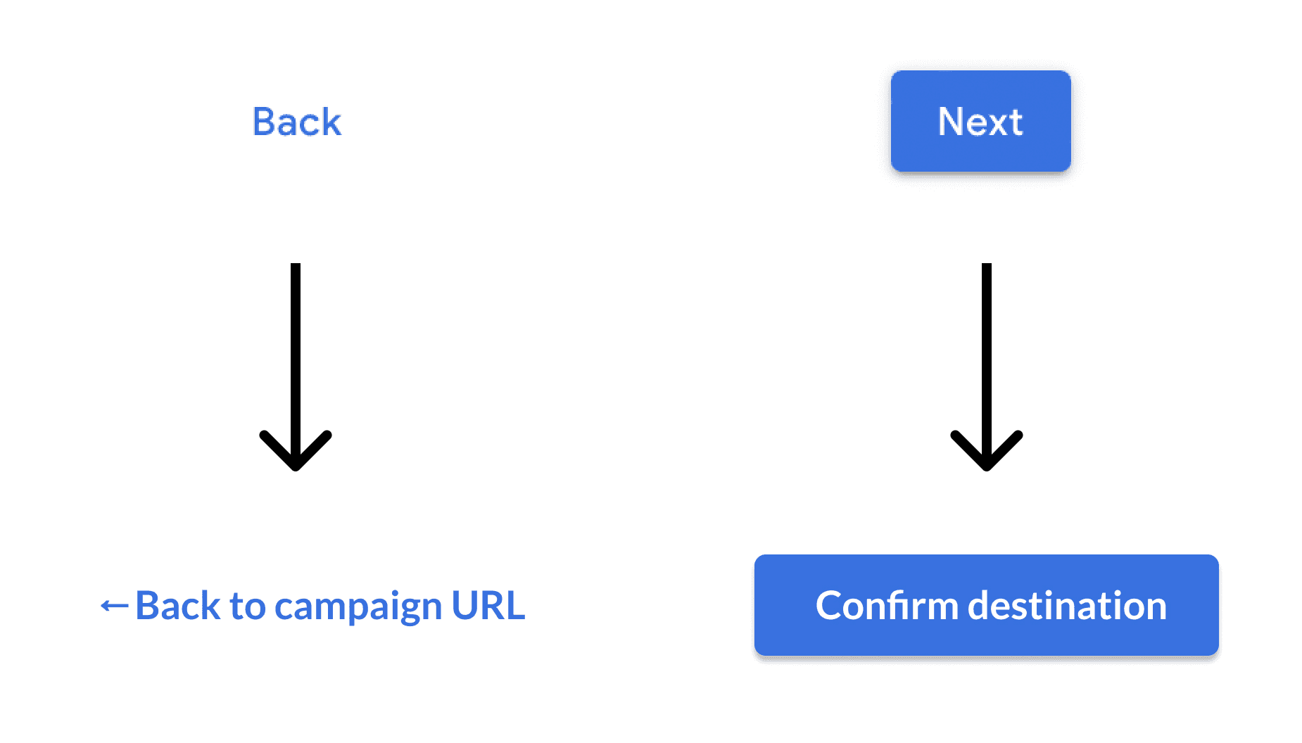 When confirming that your campaign destination URL is correct, you essentially have two choices: back or next.