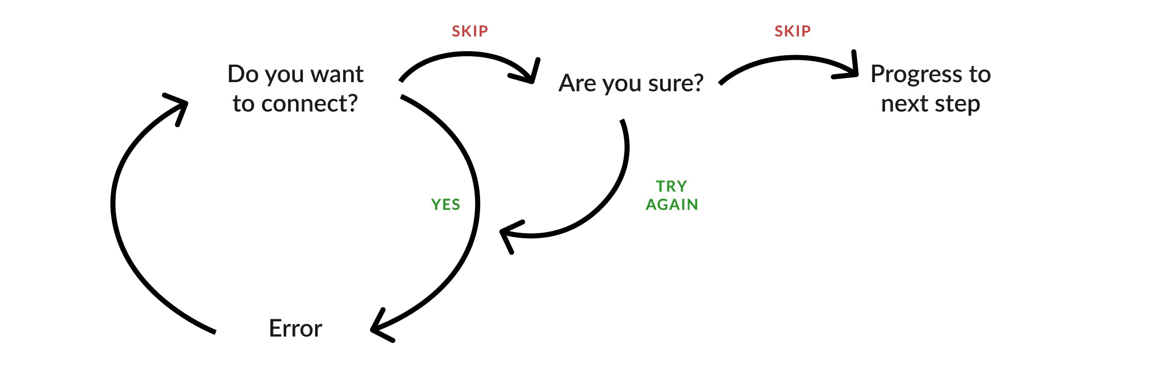 But if you try and skip the integration, you're shown the default 'are you sure?' pop-up.
