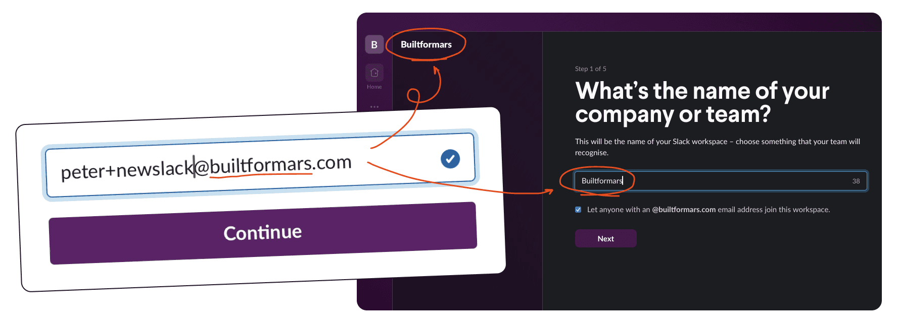 Another example is that they take your email domain, and pre-fill the name of your workspace.