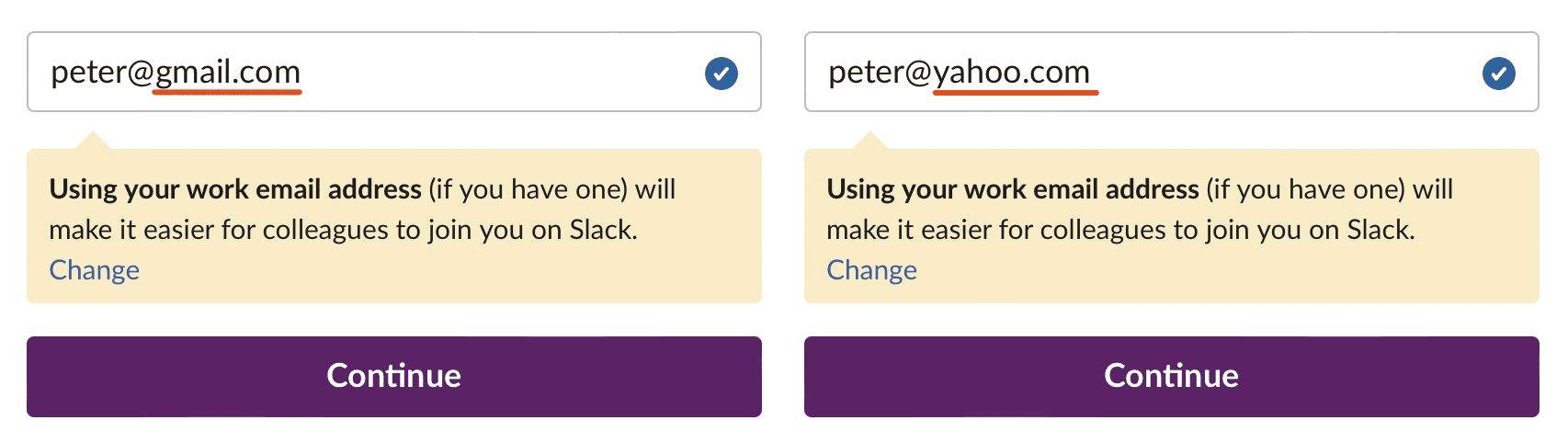 For example, if you attempt to sign up using a common personal address, they'll prompt you that the experience is better when using your work email.