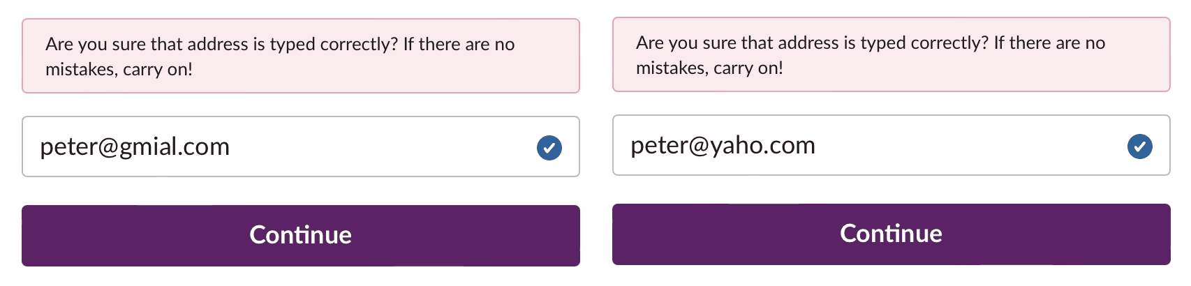 Even if you're not strictly a B2B tool, you can use this same process to warn users about obvious typos, before they sit and wait for a confirmation email that never arrives.