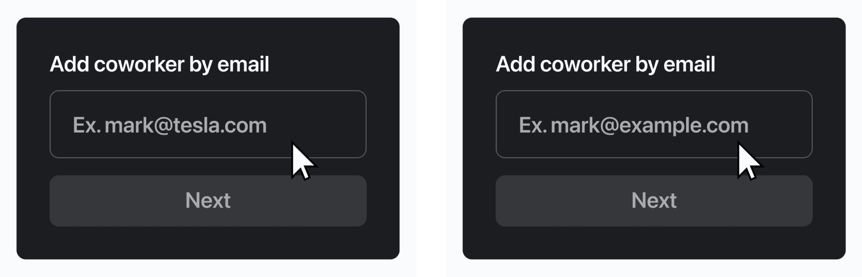 Imagine that you're the Head of Design at Tesla—which of these two input fields (specifically their placeholder text) feels the most comfortable?