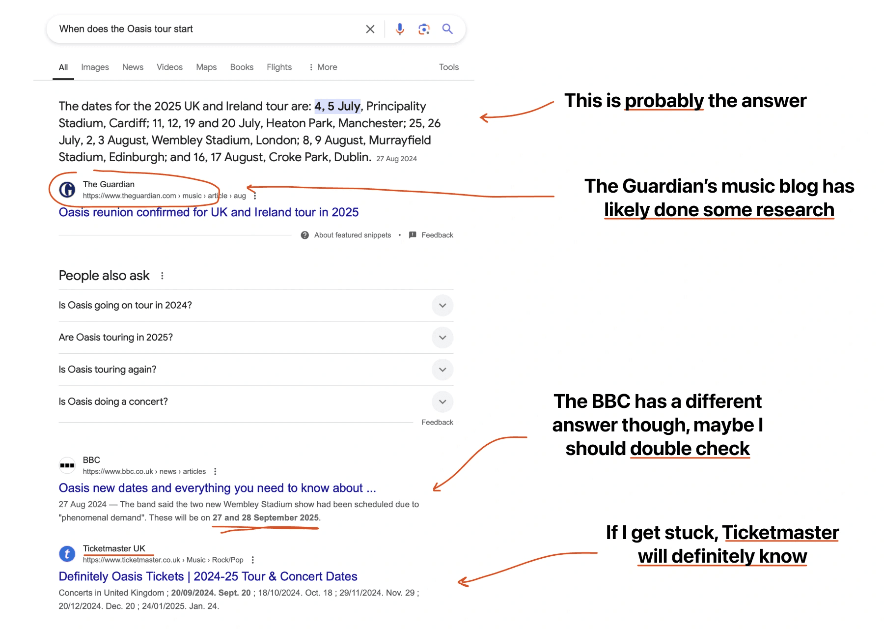 Even if the answer was the same, and despite showing their sources, you wouldn't feel as confident about it.