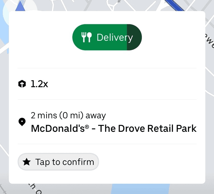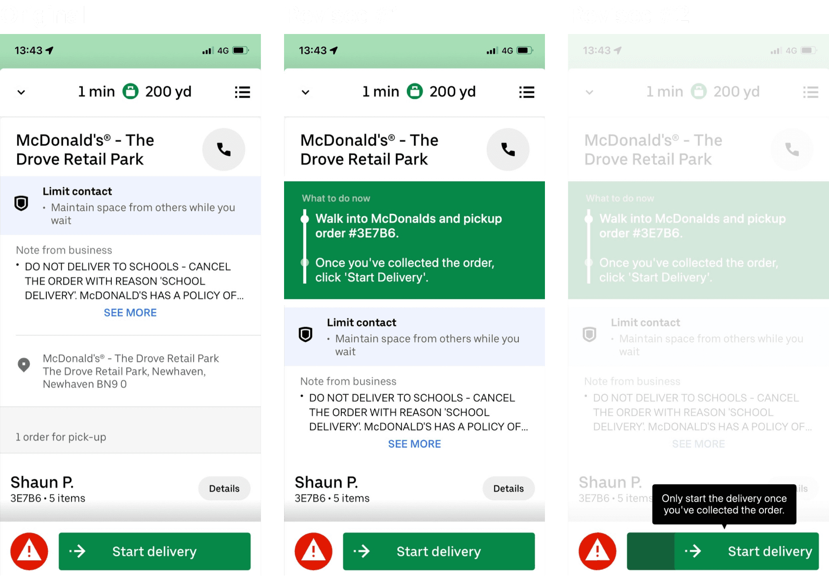 In the study, I tapped 'Start delivery' when I was sat outside McDonalds, not when I had collected the order—an error that could probably be eradicated with a clearer design.