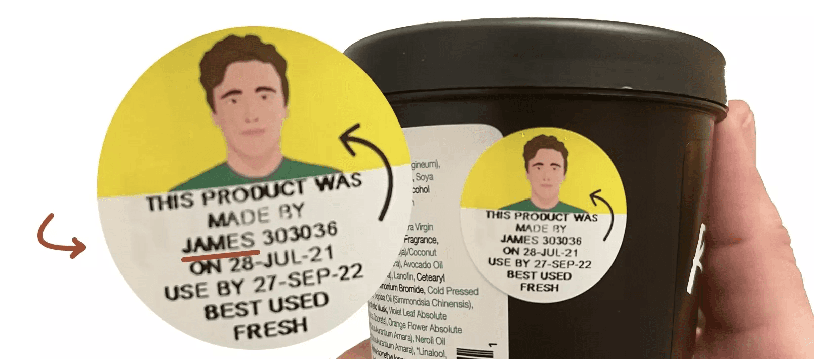 Some brands, like Lush Cosmetics, have maintained this personalisation even as they've grown, by printing stickers of the person who 'made' that item.