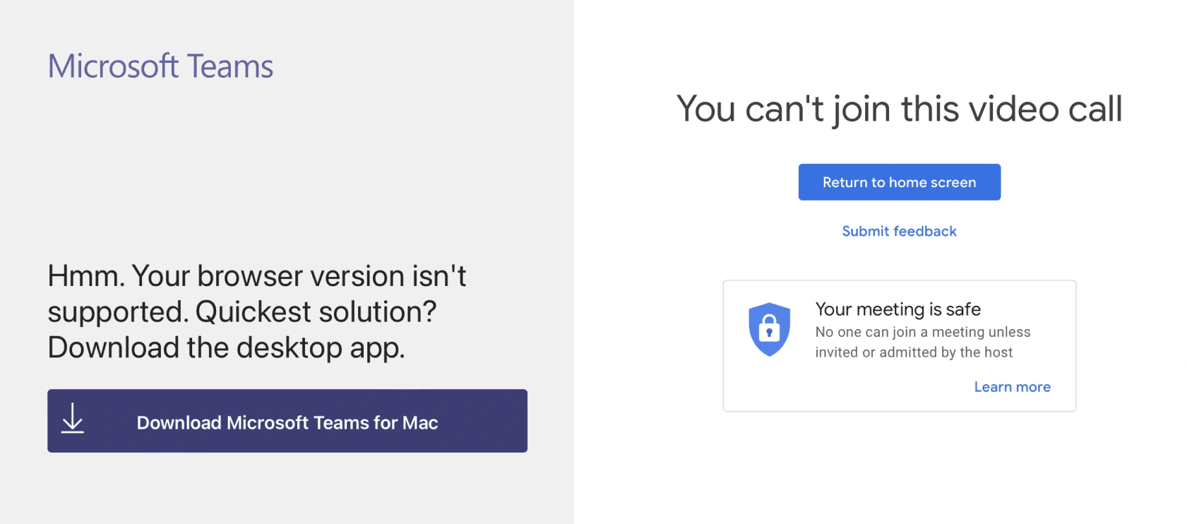 Firstly, on the default settings, when a guest attempts to share their screen, they're met with an error.