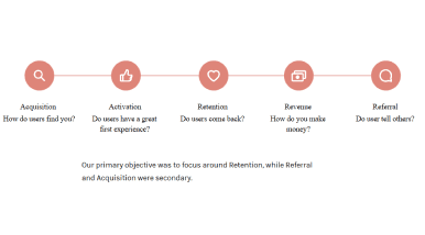 Dividing the customer lifecycle into five phases creates a clearer picture of where there is room for improvement. AARRR was created by Dave McClure, the founder of 500 Startups. He introduced the framework after he noticed many startups focusing on the wrong metrics for growth. The AARRR framework is designed to efficiently break down each phase of the customer lifecycle and make necessary improvements in the funnel. Live Casestudy: Ticket Manager (oliviatruong.design)